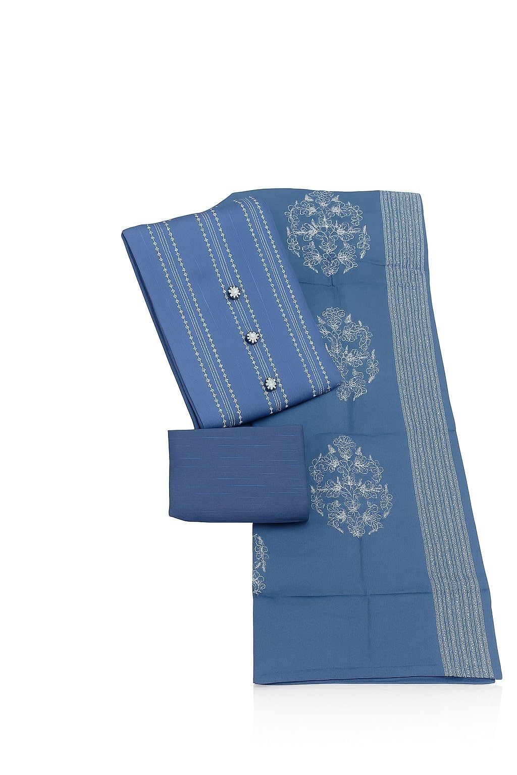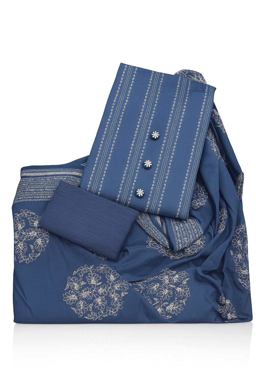 jcfs0067 Elegant Navy Blue Embroidered Unstitched Suit Set with Dupatta & Bottom